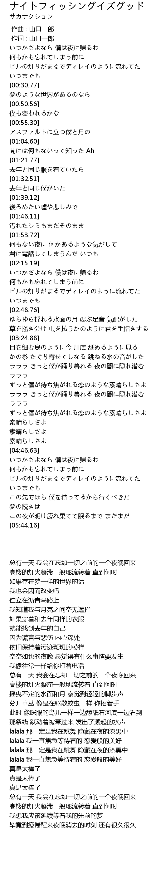| [02:19.61] | いつかさよなら 僕は夜に帰るわ 何もかも忘れてしまう前に |