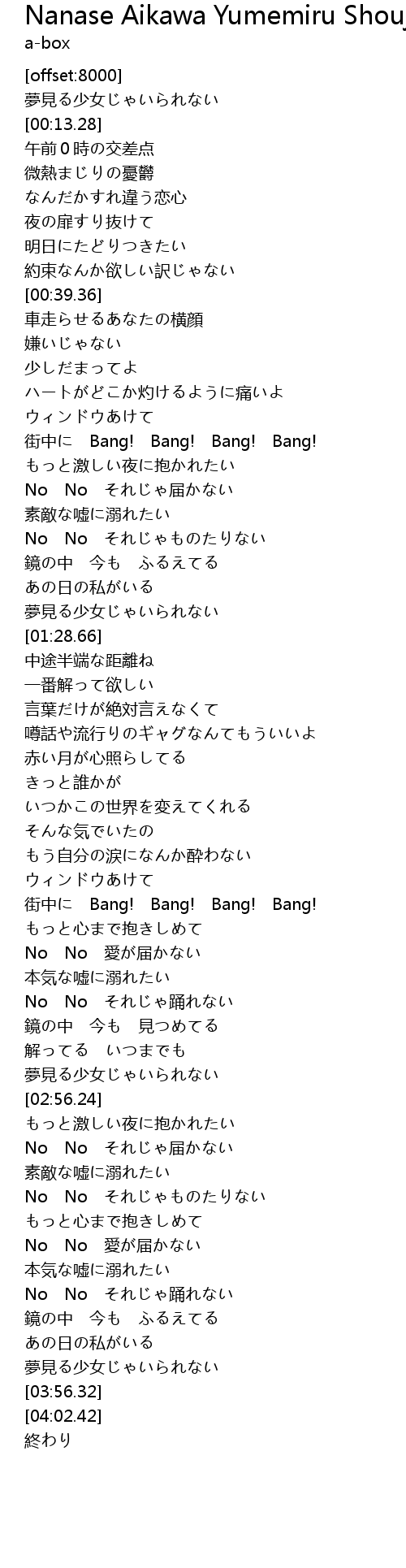 | Song | Nanase Aikawa Yumemiru Shoujou Ja Irarenai |