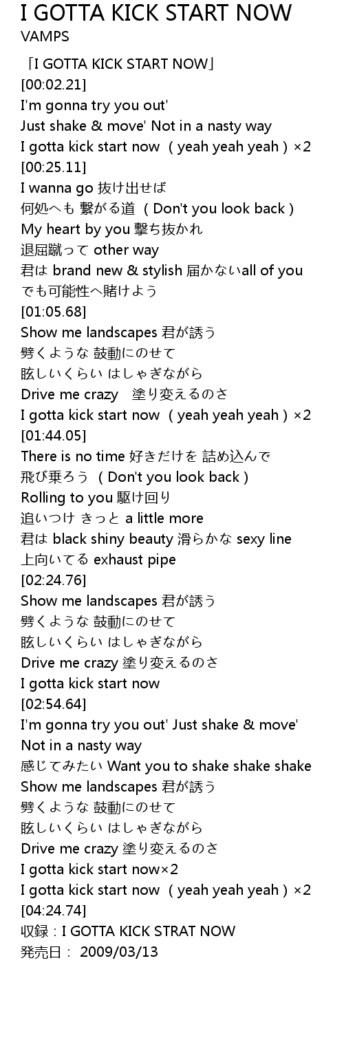 | [04:09.74] | I gotta kick start now (yeah yeah yeah)×2 |