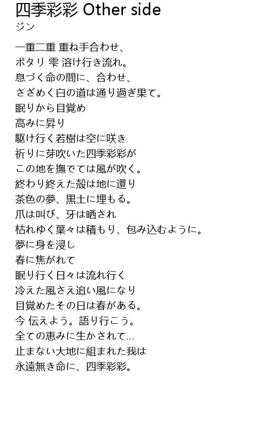 | [03:56.46] | 永遠無き命に、四季彩彩。 |