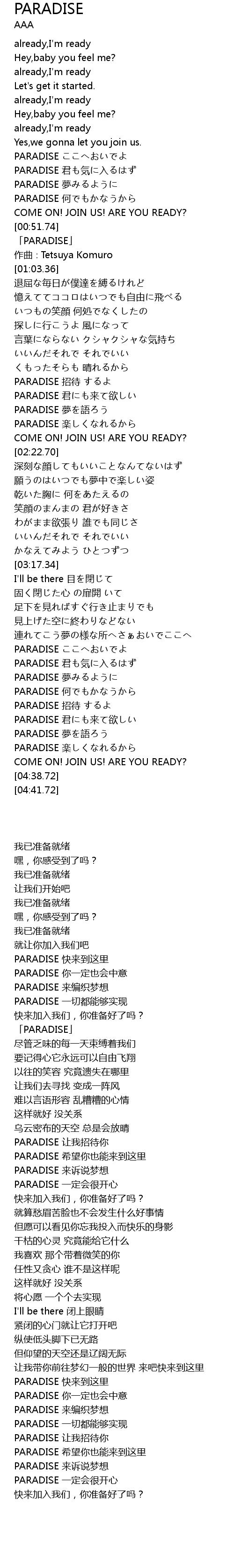 | [03:56.17] | PARADISE hé |