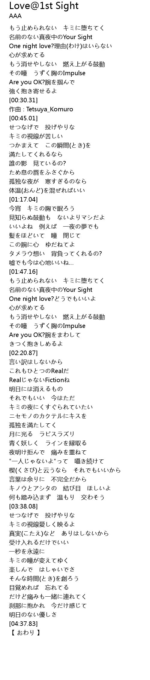 | [00:39.01] | 作曲∶Tetsuya_Komuro |