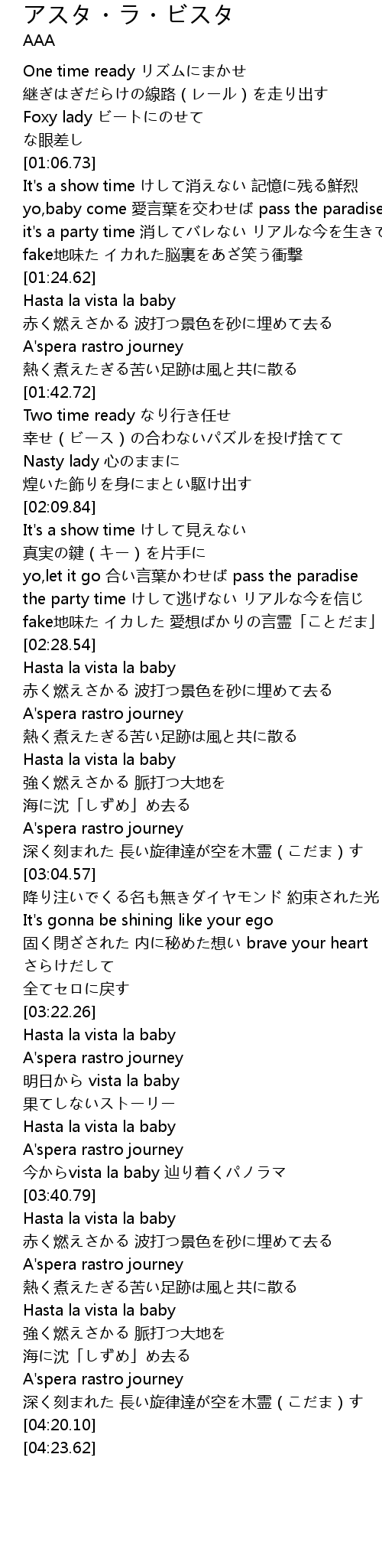 | [03:36.26] | 今からvista la baby 辿り着くパノラマ |