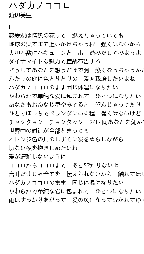 | Song | ハダカノココロ |