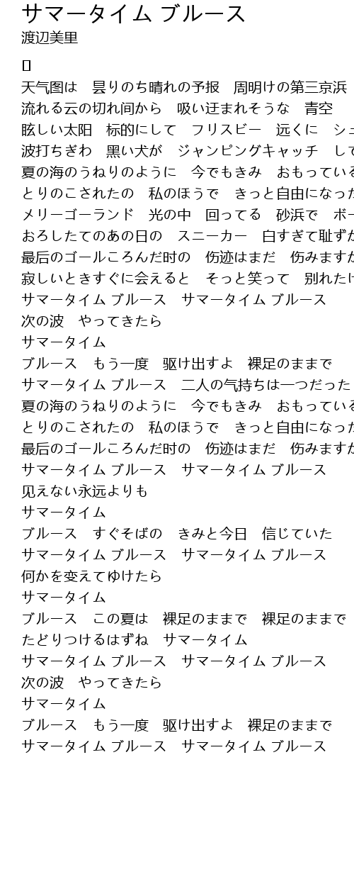 | サマータイム ブルース もう一度 驱け出すよ 裸足のままで | |