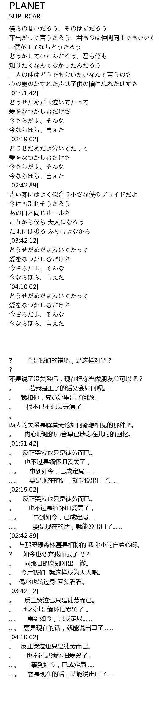 | [01:39.96] | 心の奥のかすれた声は子供の頃に忘れたはずさ |