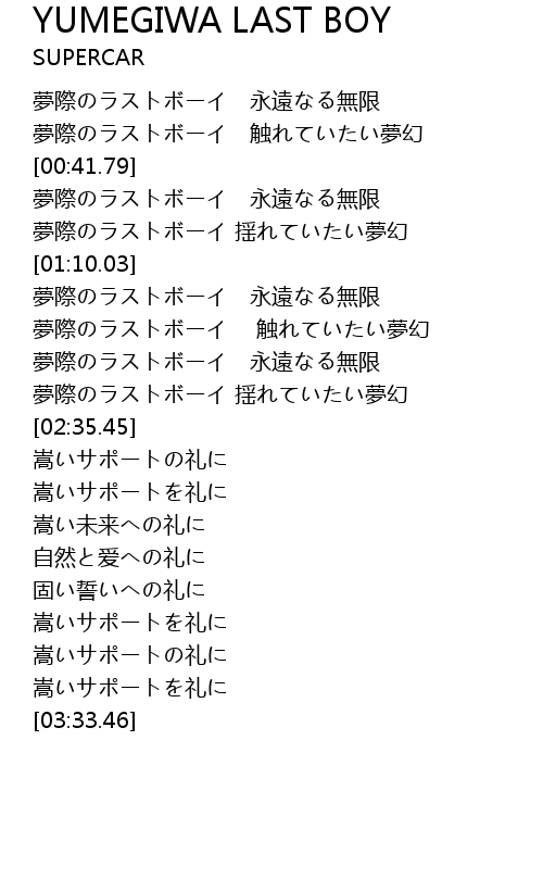 | [02:28.97] | 夢際のラストボーイ 揺れていたい夢幻 |
