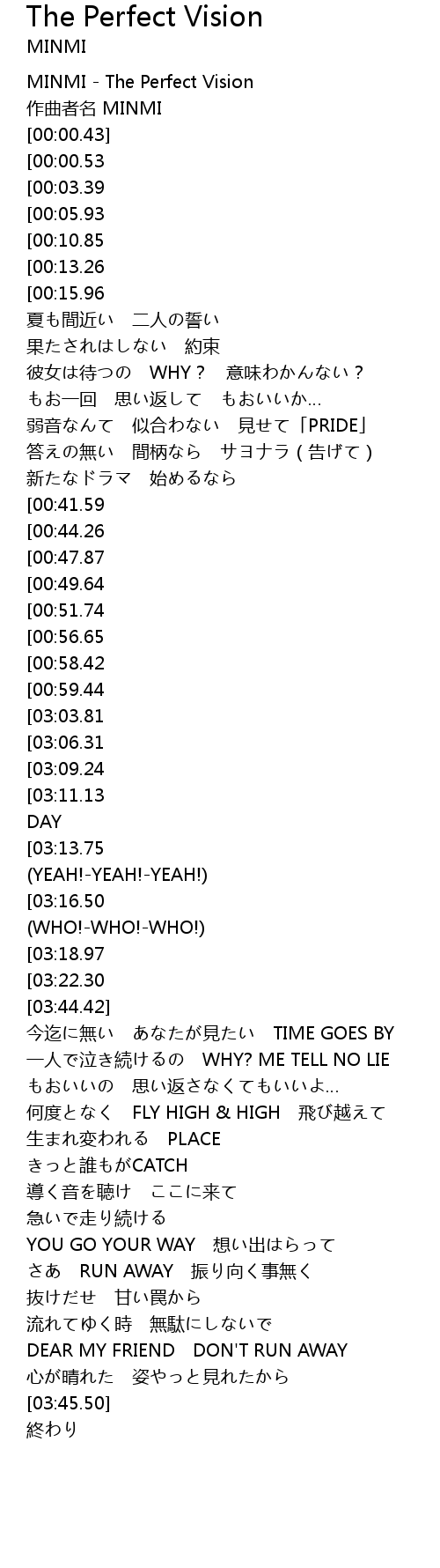 | [00:00.00] | MINMI - The Perfect Vision |