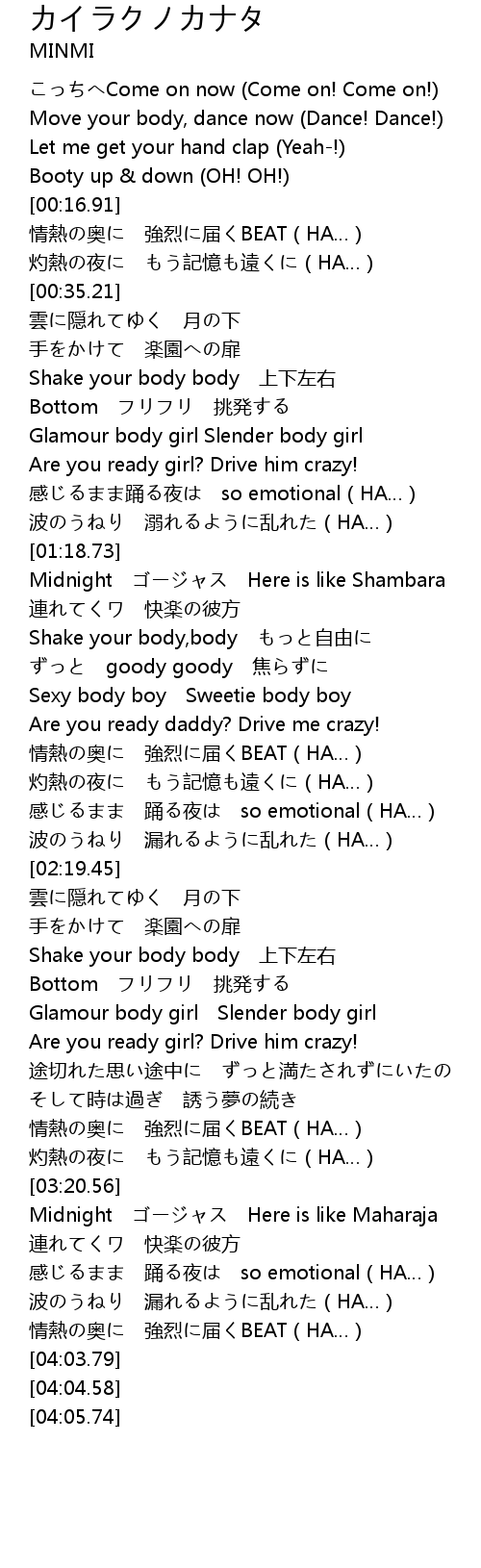 | [02:02.26] | 感じるまま 踊る夜は so emotional(HA…) |