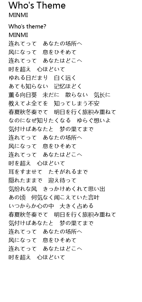 | [00:02.77] | Who's theme? |