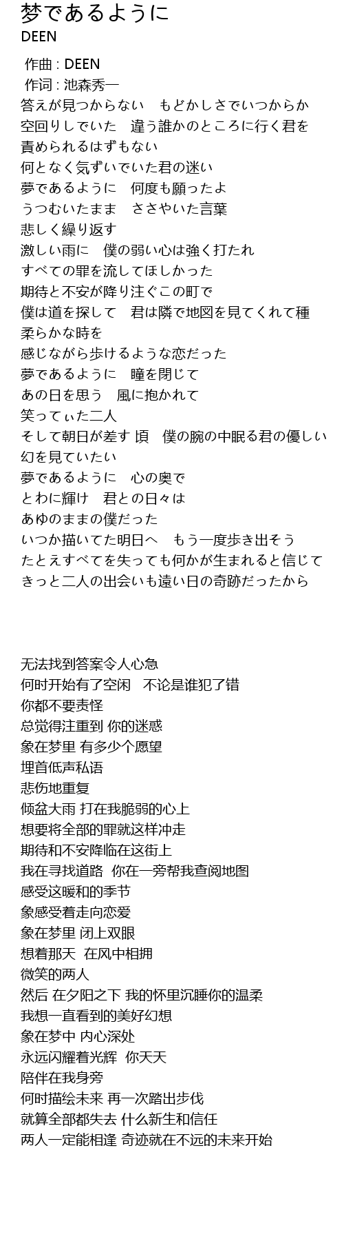 | Song | 梦であるように |