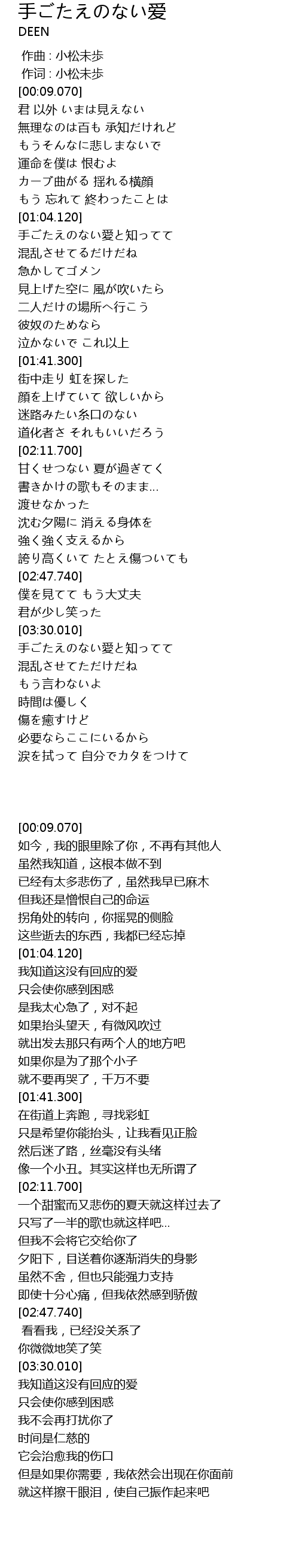 | [03:30.810] | 手ごたえのない愛と知ってて |