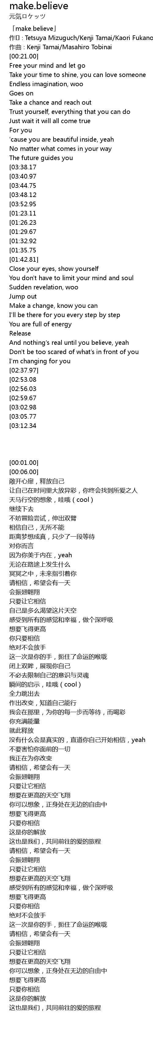 | [04:14.76][03:44.75][02:44.67][01:14.75] | Just make it believe |