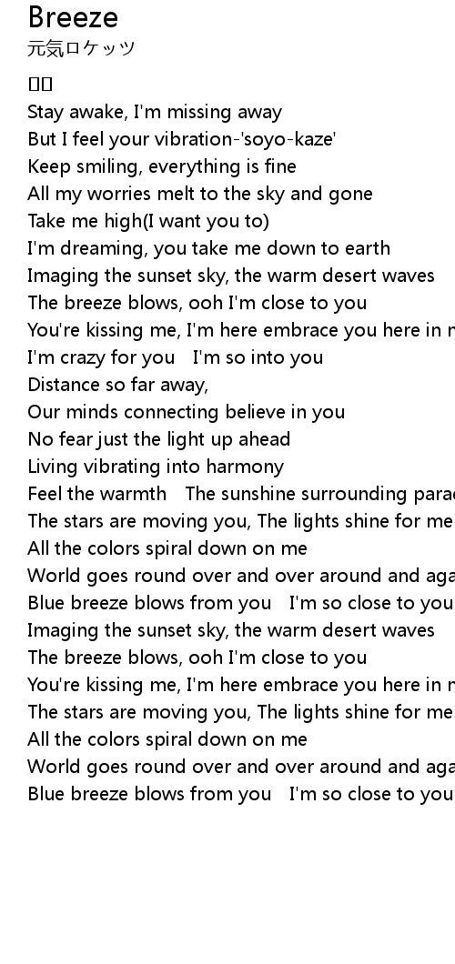 | The breeze blows, ooh I' m close to you | |