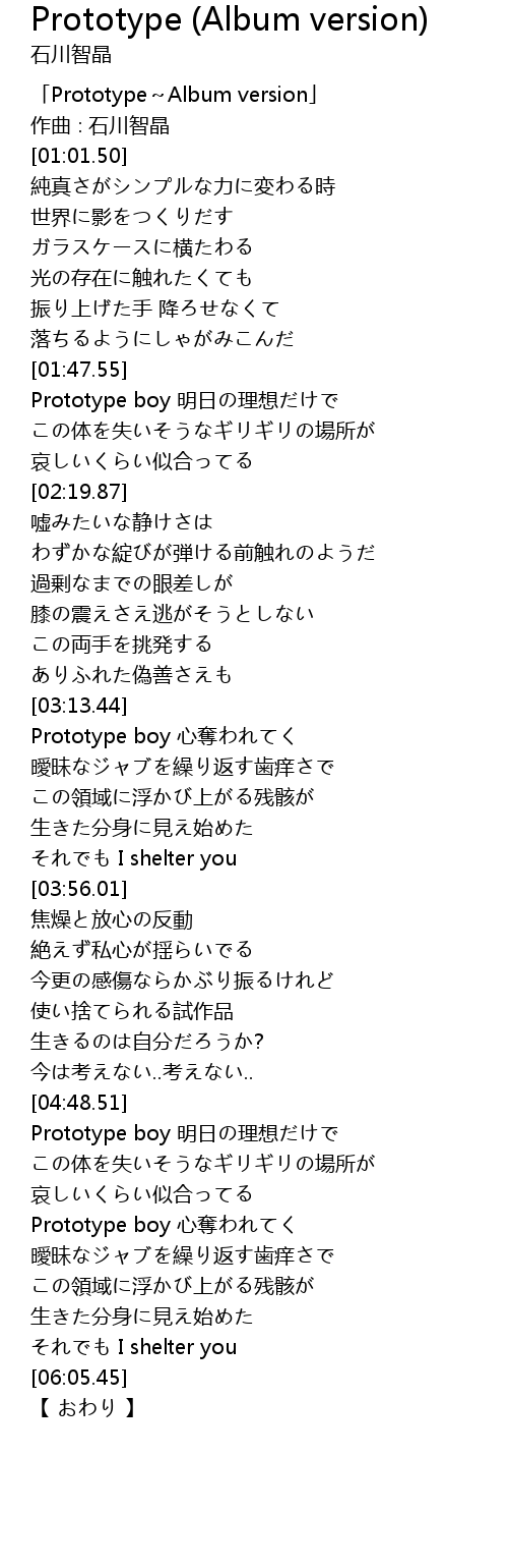 | [00:21.50] | 「Prototype~Album version」 |