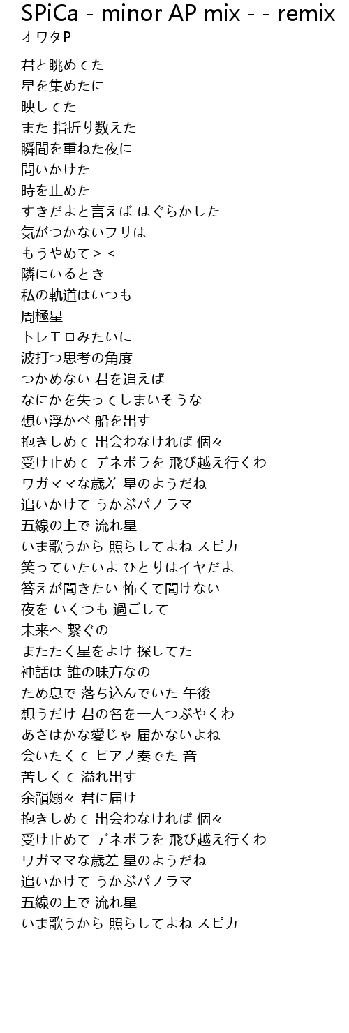 | [03:12.04] | いま歌うから 照らしてよね スピカ |