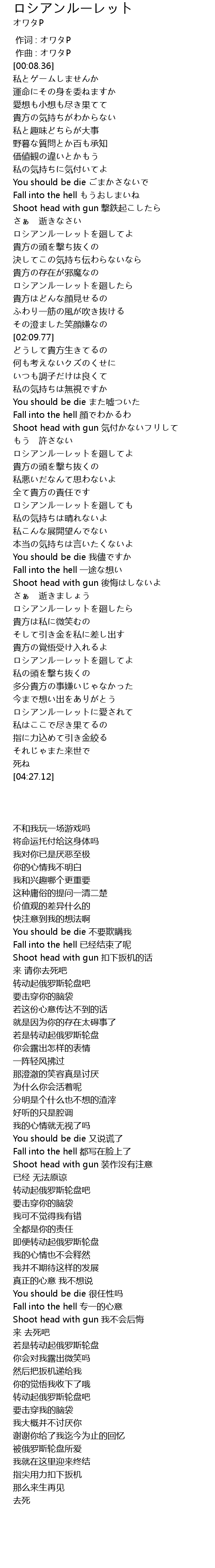 | [01:36.33] | ロシアンルーレットを廻してよ |