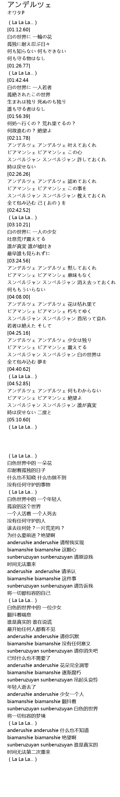 | [03:54.51] | アンデルツェ アンデルツェ 黙しておくれ |