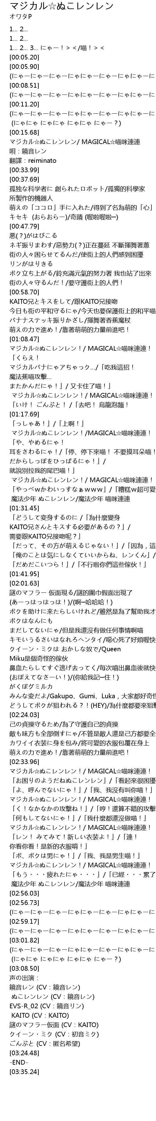 | [03:15.19] | ぬこレンレン (CV:鏡音レン) |