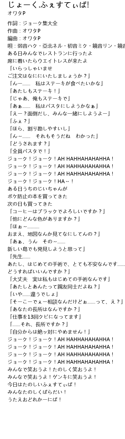 | [01:25.25] | ジョーク!ジョーク!HA~! |