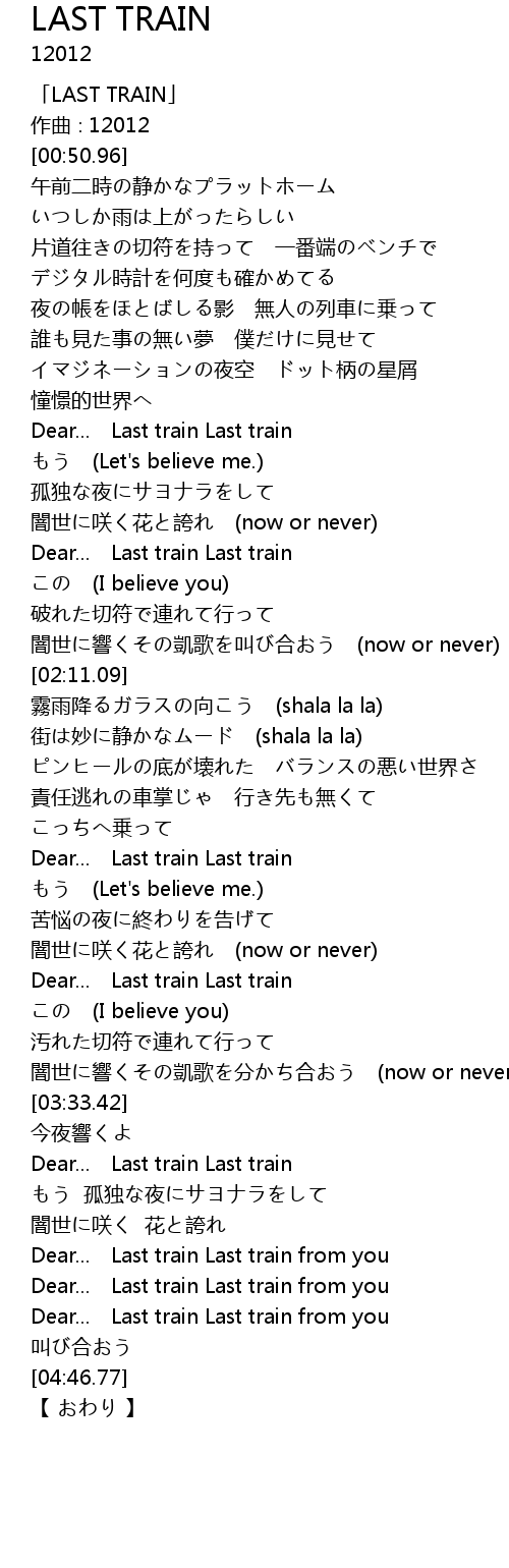 | [00:52.96] | 午前二時の静かなプラットホーム |