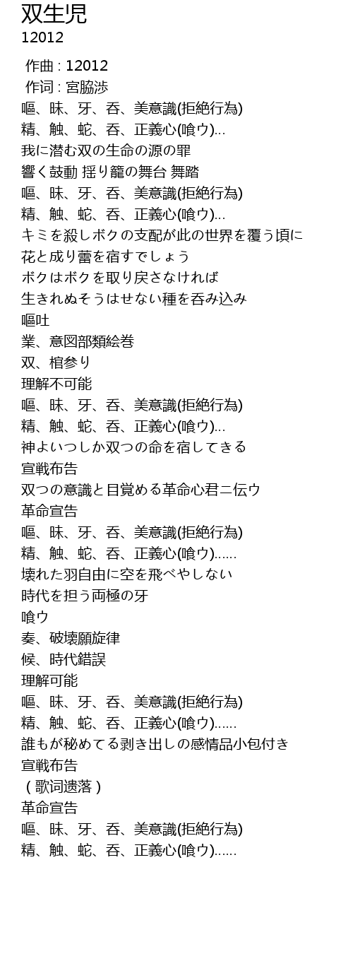 | [02:55.17] | 精、触、蛇、呑、正義心(喰ウ)…… |