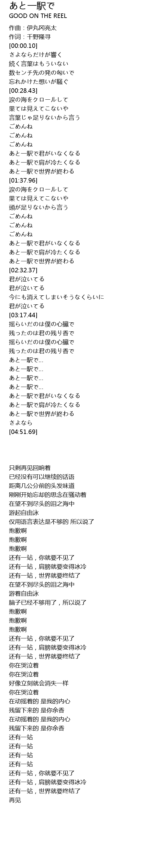 | [04:33.27] | あと一駅で世界が終わる |