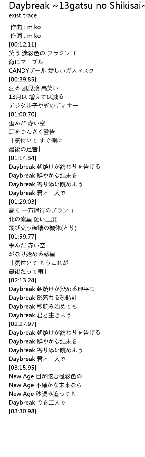 | [03:01.42] | Daybreak 朝焼けが終わりを告げる |