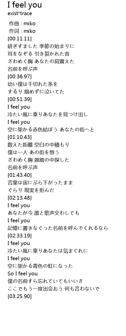 | [00:52.80] | 冷たい風に乗りあなたを見つけ出し |