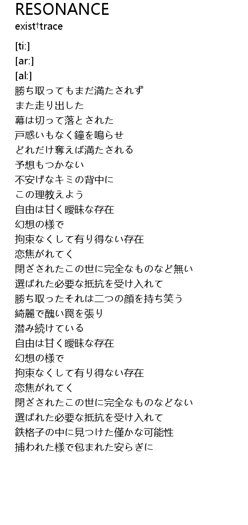 | [01:16.85] | 自由は甘く曖昧な存在 |
