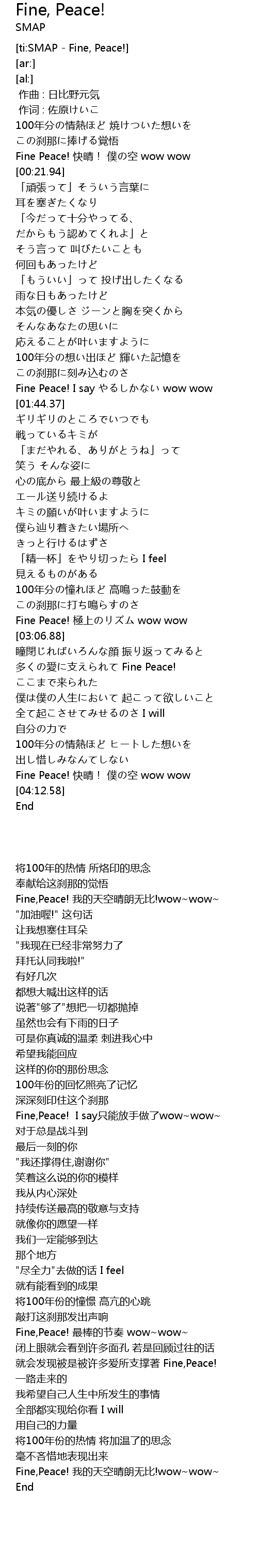 | [ti:SMAP - Fine, Peace!] | |