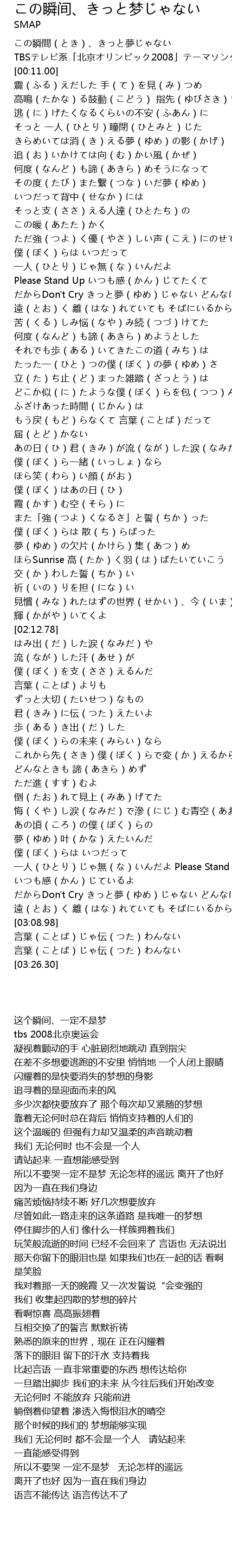 | [00:08.00] | TBSテレビ系「北京オリンピック2008」テーマソング |