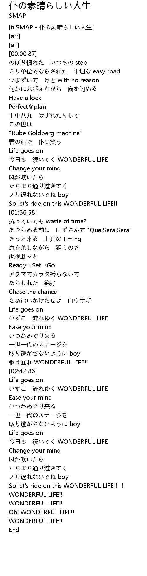 | [02:36.15] | qū huí WONDERFUL LIFE!! |