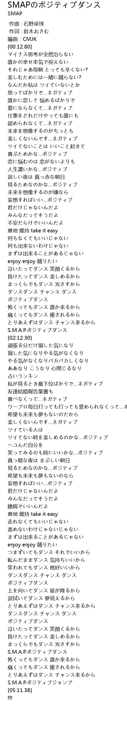 | [04:44.65] | S.M.A.P.ポジティブダンス |