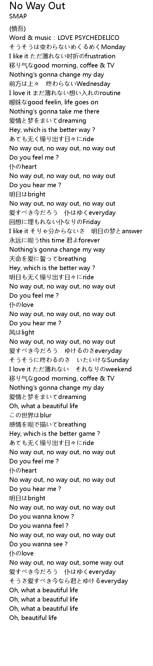 | No way out, no way out, some way out | |