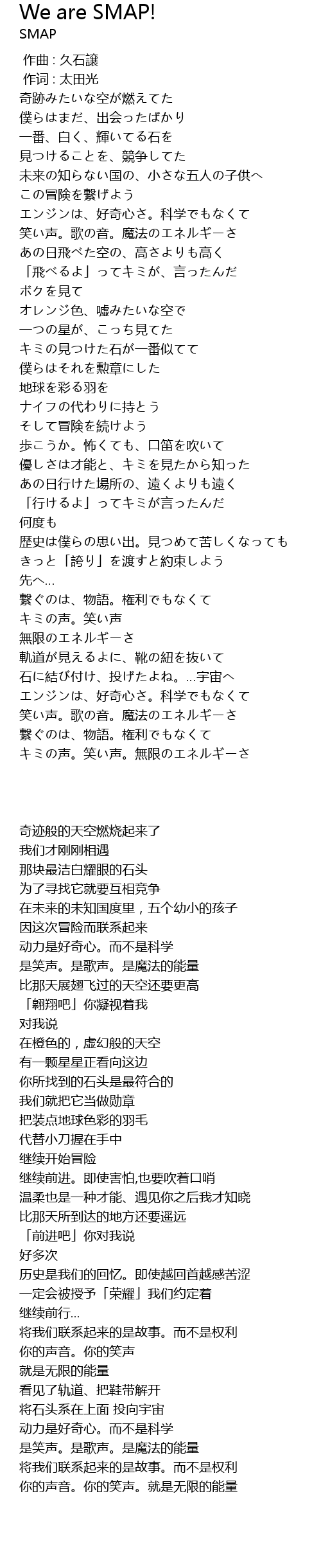 | Song | We are SMAP! |