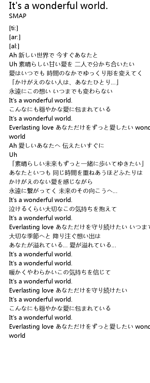 | [01:36.07] | Everlasting love あなただけをずっと愛したい wonderful world |