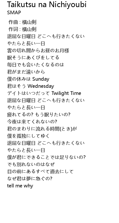 | [01:18.92] | 退屈な日曜日 どこへも行きたくない |