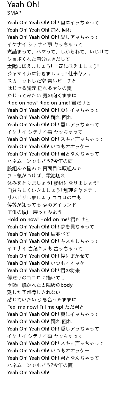 | Yeah Oh! Yeah Oh! Oh! yan | |