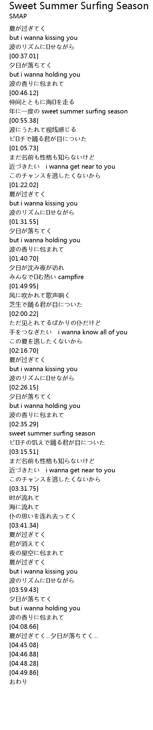 | [00:51.06] | 年に一度の sweet summer surfing season |