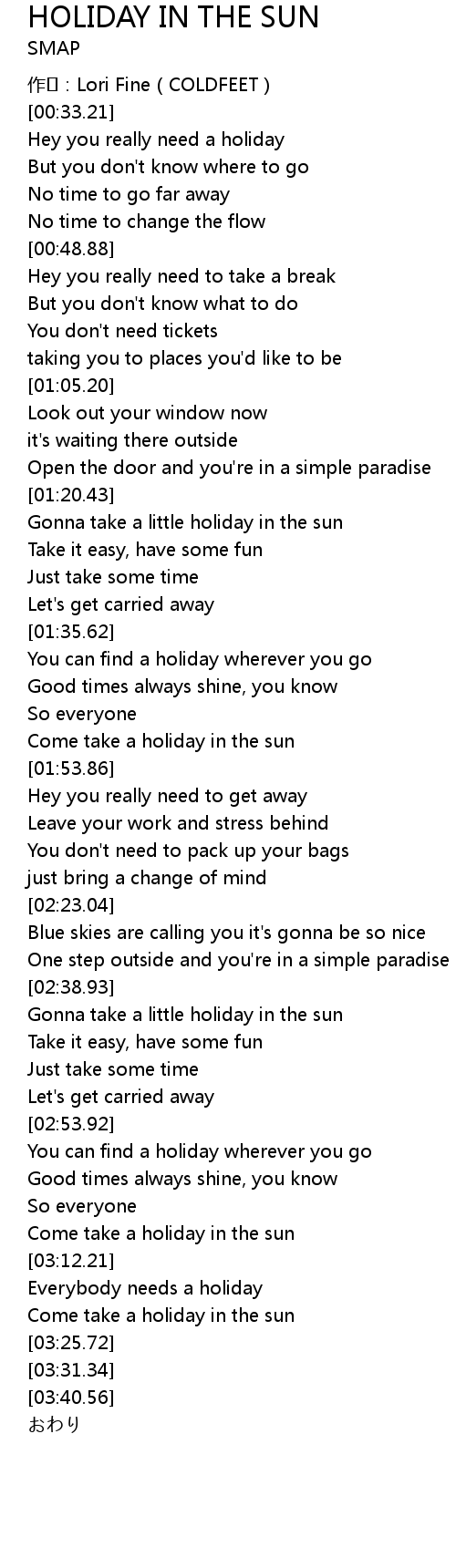 | [02:39.34] | Gonna take a little holiday in the sun |