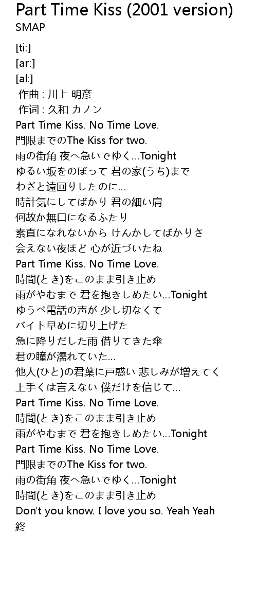 | [03:08.62] | Part Time Kiss. No Time Love. |