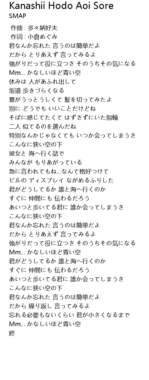 Kanashii Hodo Aoi Sore Lyrics