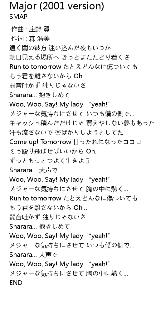 | [01:01.72] | メジャーな気持ちにさせて いつも僕の側で… |