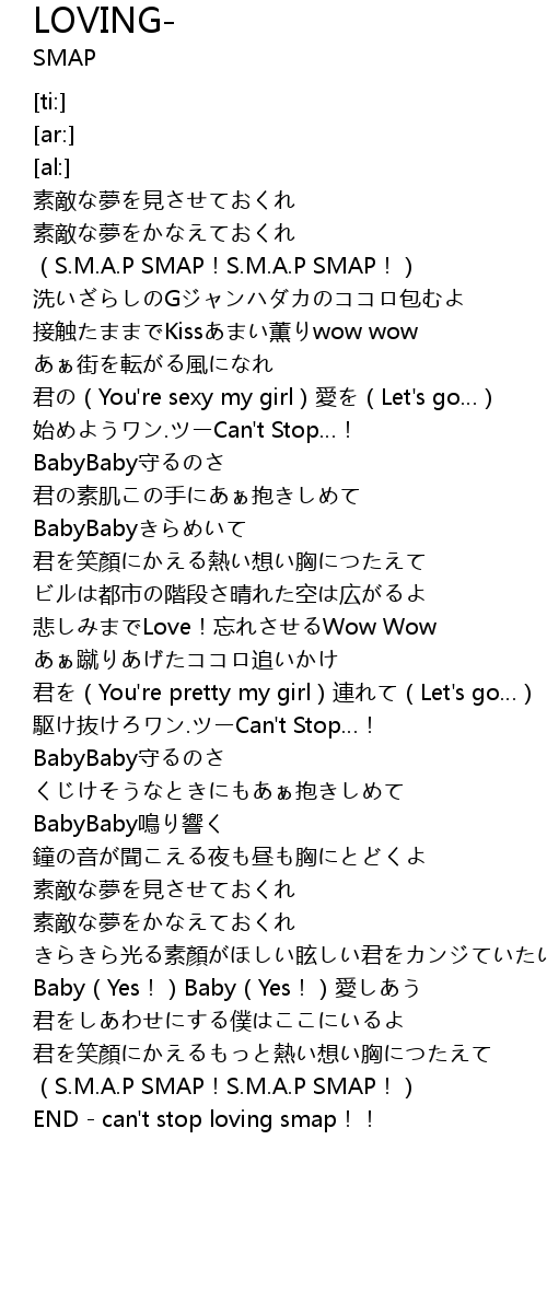 | [00:25.13] | S. M. A. P SMAP! S. M. A. P SMAP! |