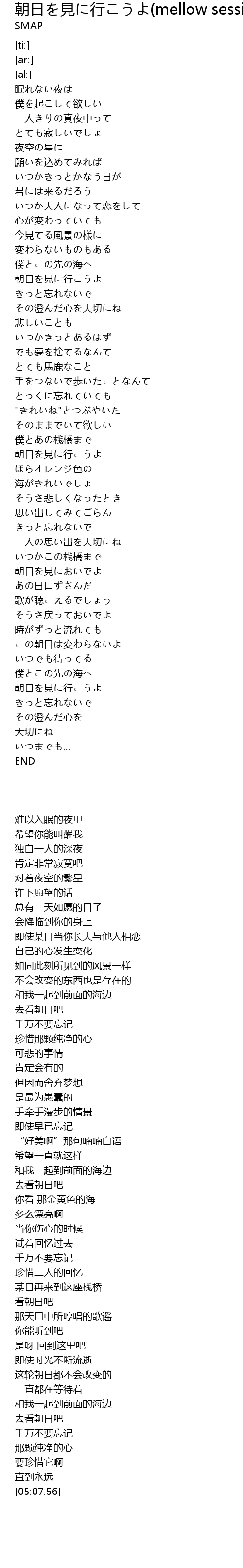| [04:38.37] | 朝日を見に行こうよ |