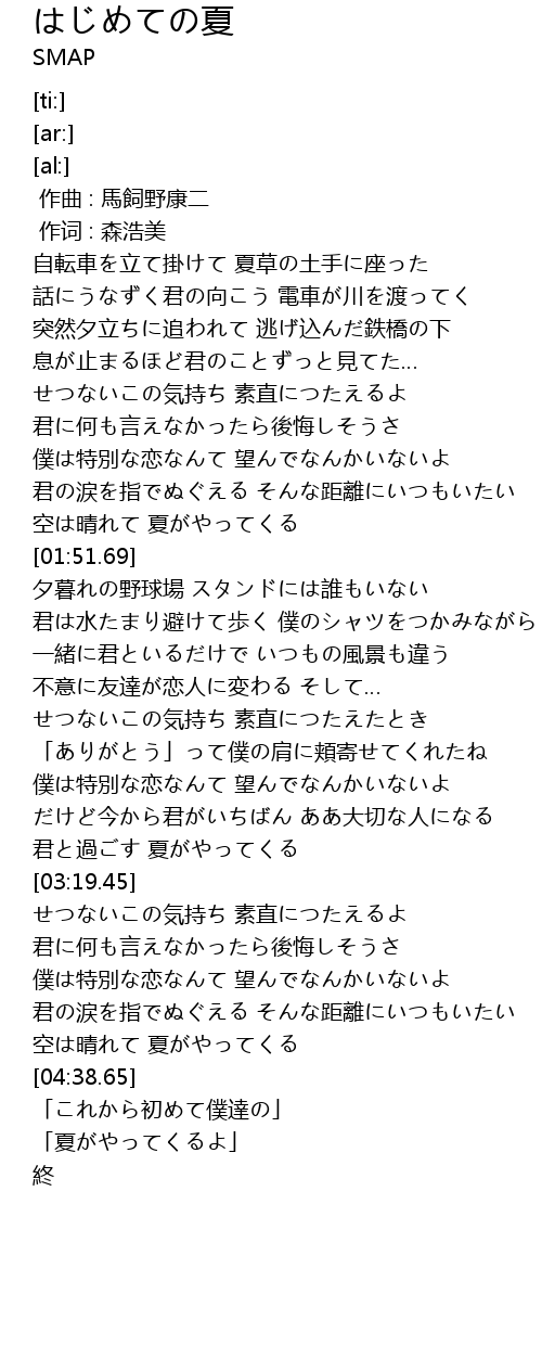 | [01:41.33] | 空は晴れて 夏がやってくる |