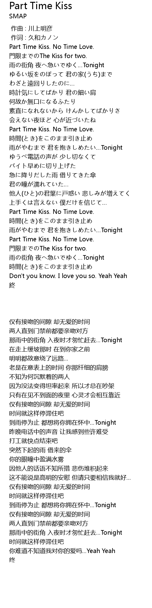 | [00:36.31] | Part Time Kiss. No Time Love. |