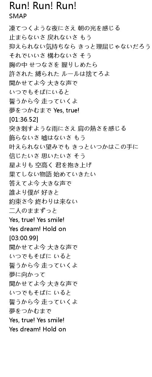 | [01:30.88] | 夢をつかむまで Yes, true! |