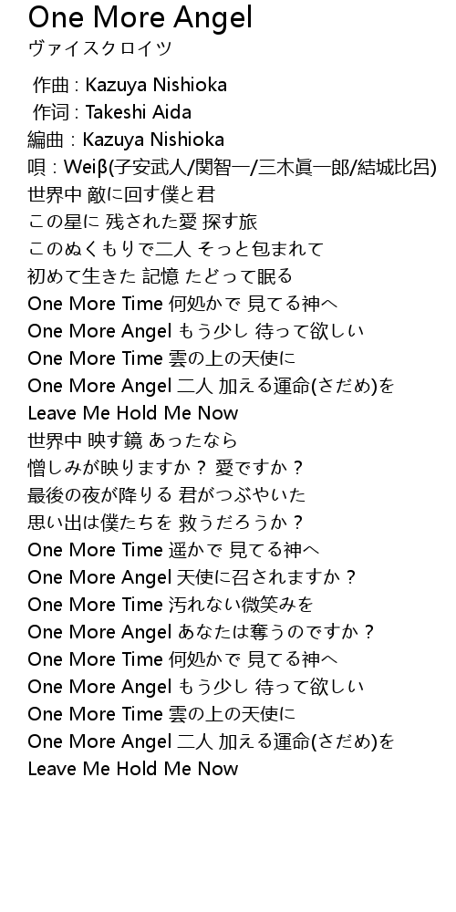 | [1:02.070] | One More Angel もう少し 待って欲しい |